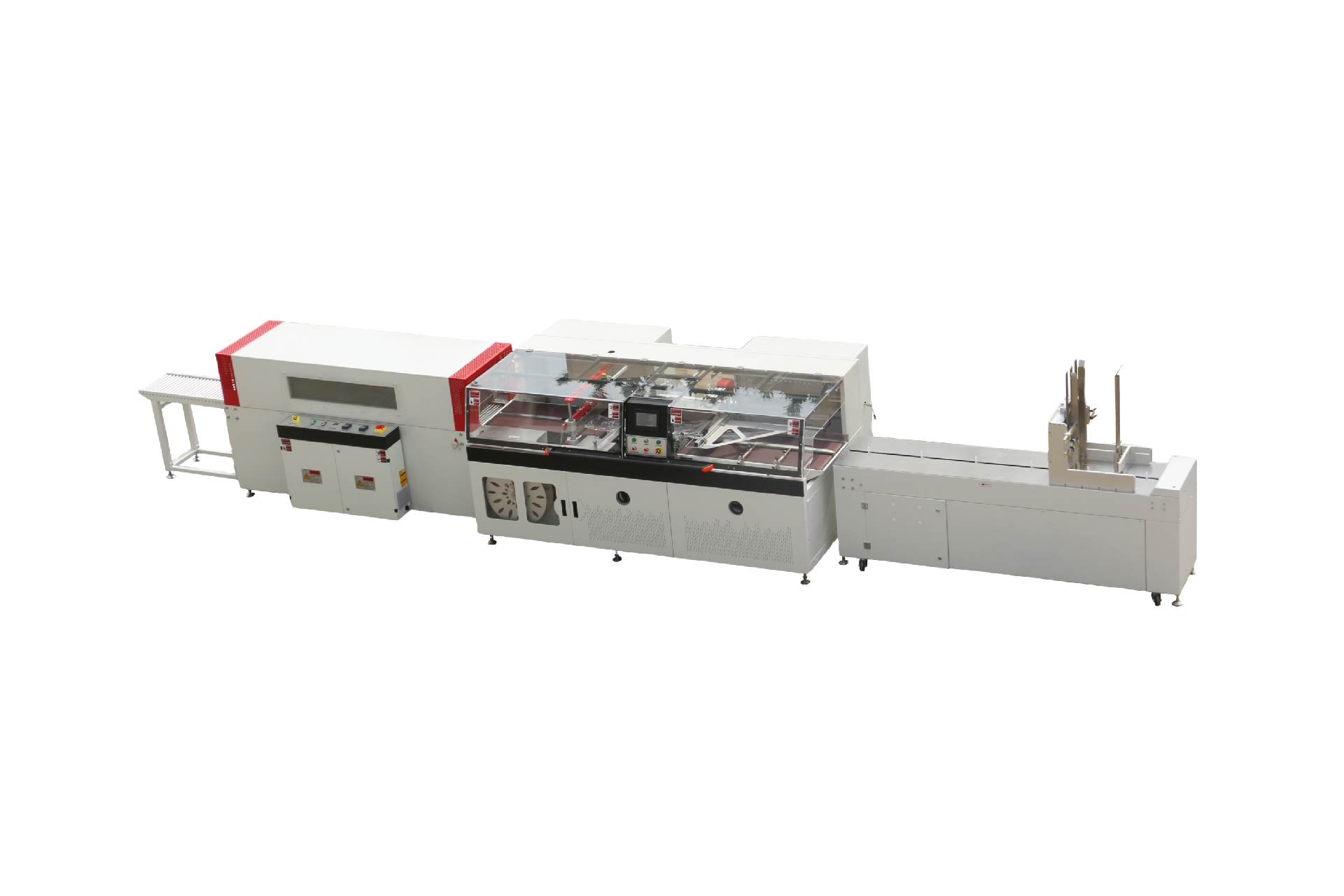 本機采用先進的邊封及往復式橫封技術,具有持續封口動作。伺服控制系統,能在高效的前提下實現完美的熱縮包裝;
